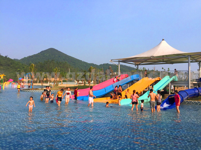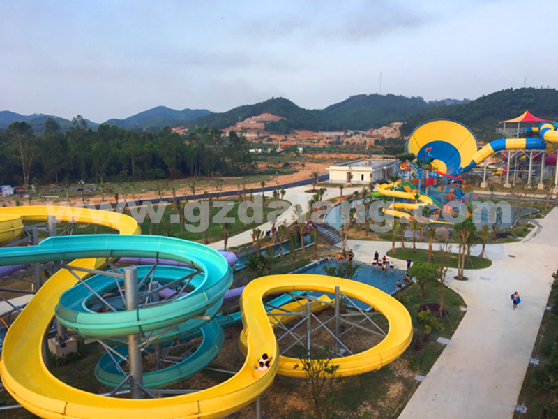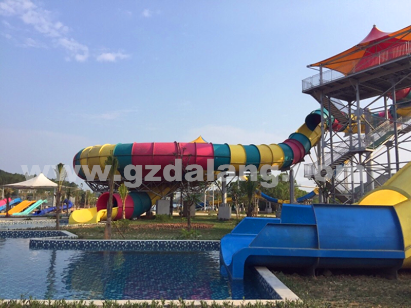 越南榮市水上樂(lè )園項目由廣東大浪水上樂(lè )園設備有限公司提供水上樂(lè )園全套設備,包含大喇叭滑梯,巨獸碗滑梯,彩虹競賽滑梯,高速快速滑梯,螺旋組合滑梯、大型水寨,兒童滑梯,造浪池、環(huán)流河等等設備。