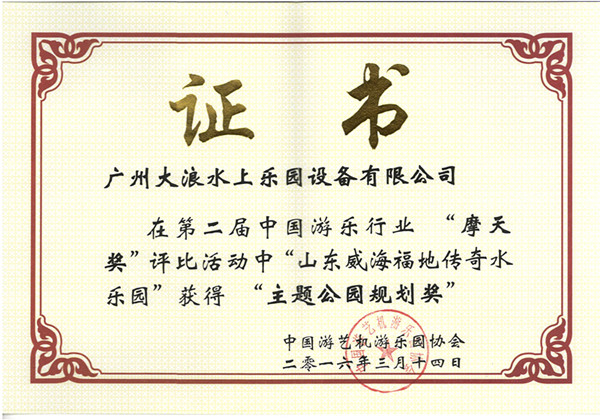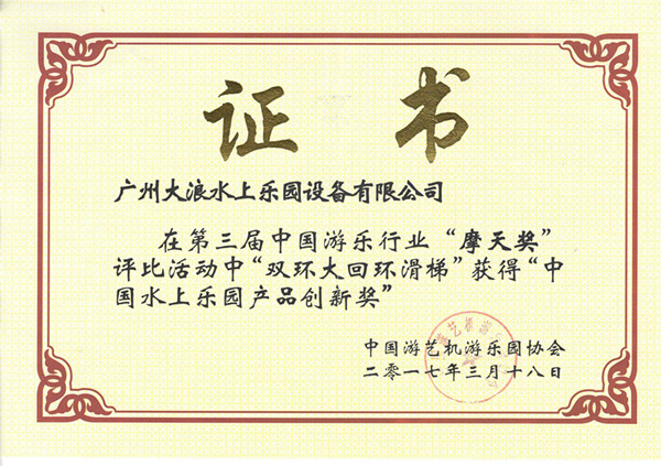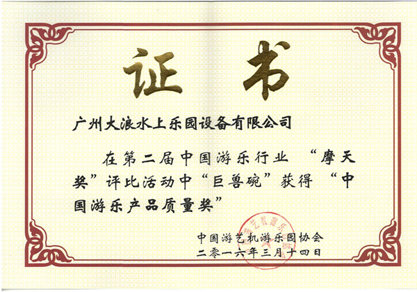 時(shí)至今日,公司的產(chǎn)品和服務(wù)已行銷(xiāo)全球80多個(gè)國家和地區,遍布中國除港澳臺外的所有省市自治區,2000多家旅游度假區游泳場(chǎng)館、水上樂(lè )園使用大浪的產(chǎn)品和服務(wù),在業(yè)界擁有顯著(zhù)的影響力和口碑。2009年被評為《中國質(zhì)量信用AAA級》企業(yè), 2012年榮為“中國游藝機游樂(lè )園協(xié)會(huì )常務(wù)理事單位”。2015-2018連續四年榮獲中國游樂(lè )行業(yè)協(xié)會(huì )頒發(fā)的 “摩天獎”,并連續兩年榮獲中國國際游戲游藝博覽會(huì )項目創(chuàng )意獎;2017年公司被評為《AAA級信用企業(yè)》,榮膺廣州品牌百強企業(yè)和嶺南好企業(yè)“最具投資價(jià)值獎”, 連續多次榮獲中國國際游博會(huì )優(yōu)秀水上樂(lè )園設備制造商“金鼎獎”以及游樂(lè )界“金冠獎 · 杰出供應商”。