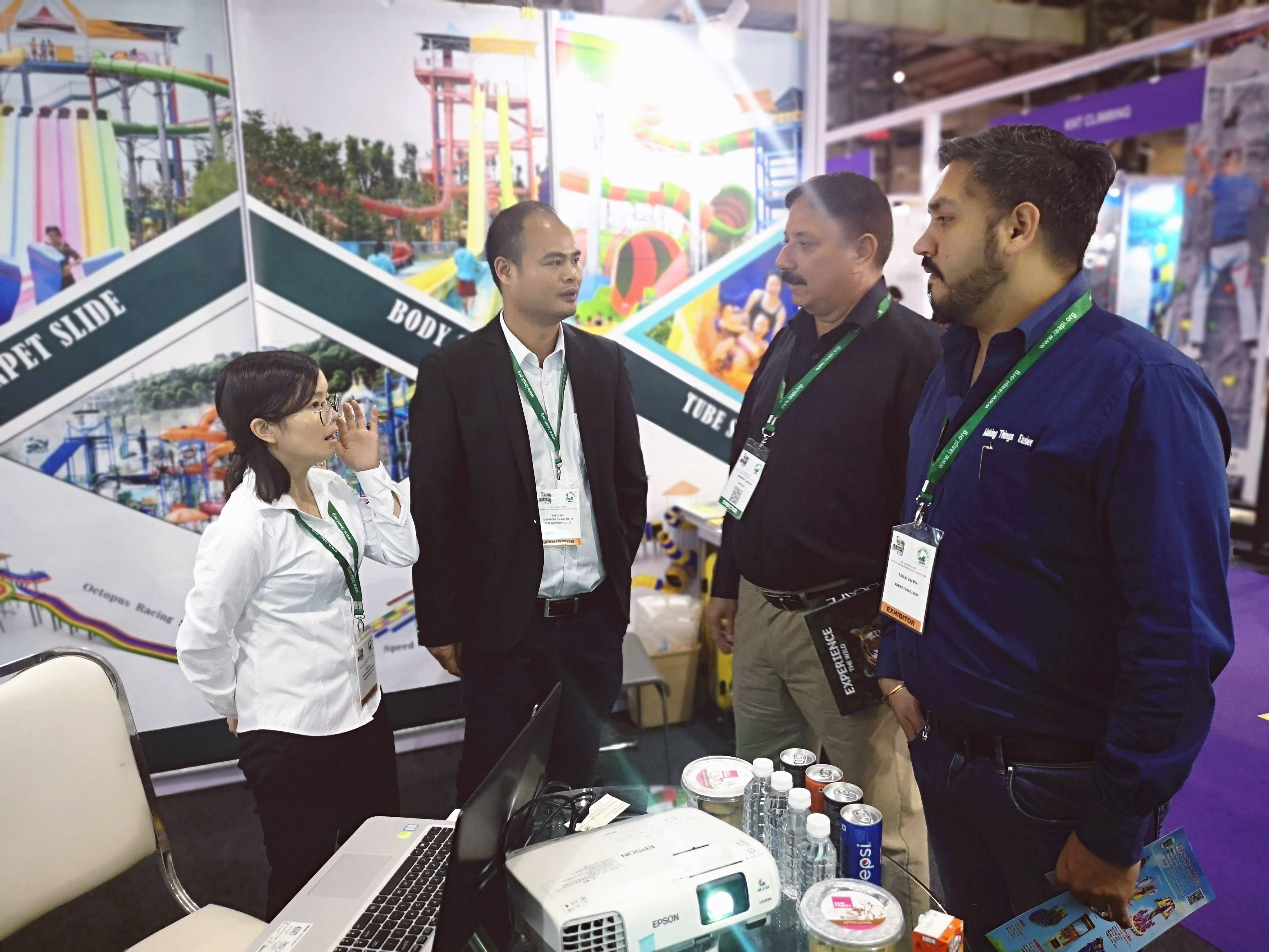 本次參加印度展由廣東大浪水上樂園設(shè)備有限公司副總經(jīng)理謝慶元領(lǐng)隊前往,在印度國際游樂設(shè)施展覽會IAAPI 2019 弘揚大浪集團“待人以誠、執(zhí)事以信”的企業(yè)精神,展現(xiàn)“中國智造”風采。
