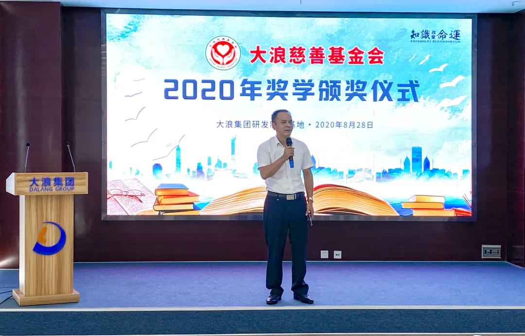 大浪慈善基金會“2020年獎學(xué)頒獎儀式”于2020年8月28日下午14點在大浪集團(tuán)研發(fā)制造基地舉行?;饡I(lǐng)導(dǎo)及集團(tuán)員工代表共同參加了本次活動。