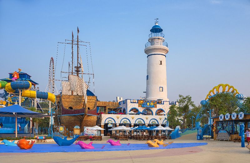 無(wú)論故事線(xiàn)還是主題化設計,都需要樂(lè )園在規劃設計之初就有精準定位與合理布局,韓英姿表示:“水樂(lè )園開(kāi)園通常在夏季,主題創(chuàng )意應該是引起游客對清涼水世界場(chǎng)景的聯(lián)想,如海洋、森林、湖泊等——2018年由悉地國際設計完成的柳州克里灣水樂(lè )園,就以地中海風(fēng)情為主題,按照故事線(xiàn)將園區分為海地之城、海地幻境、海地沙灘、海地探險四大區域,分別抽取了地中海典型建筑的特征,藍色的屋頂、白色的墻面以及燈塔,仿地中海的海灘、礁石、漁船等要素,從而營(yíng)造出了浪漫的海濱氣氛,滿(mǎn)足了身處內陸的柳州市民對海洋的向往?!?