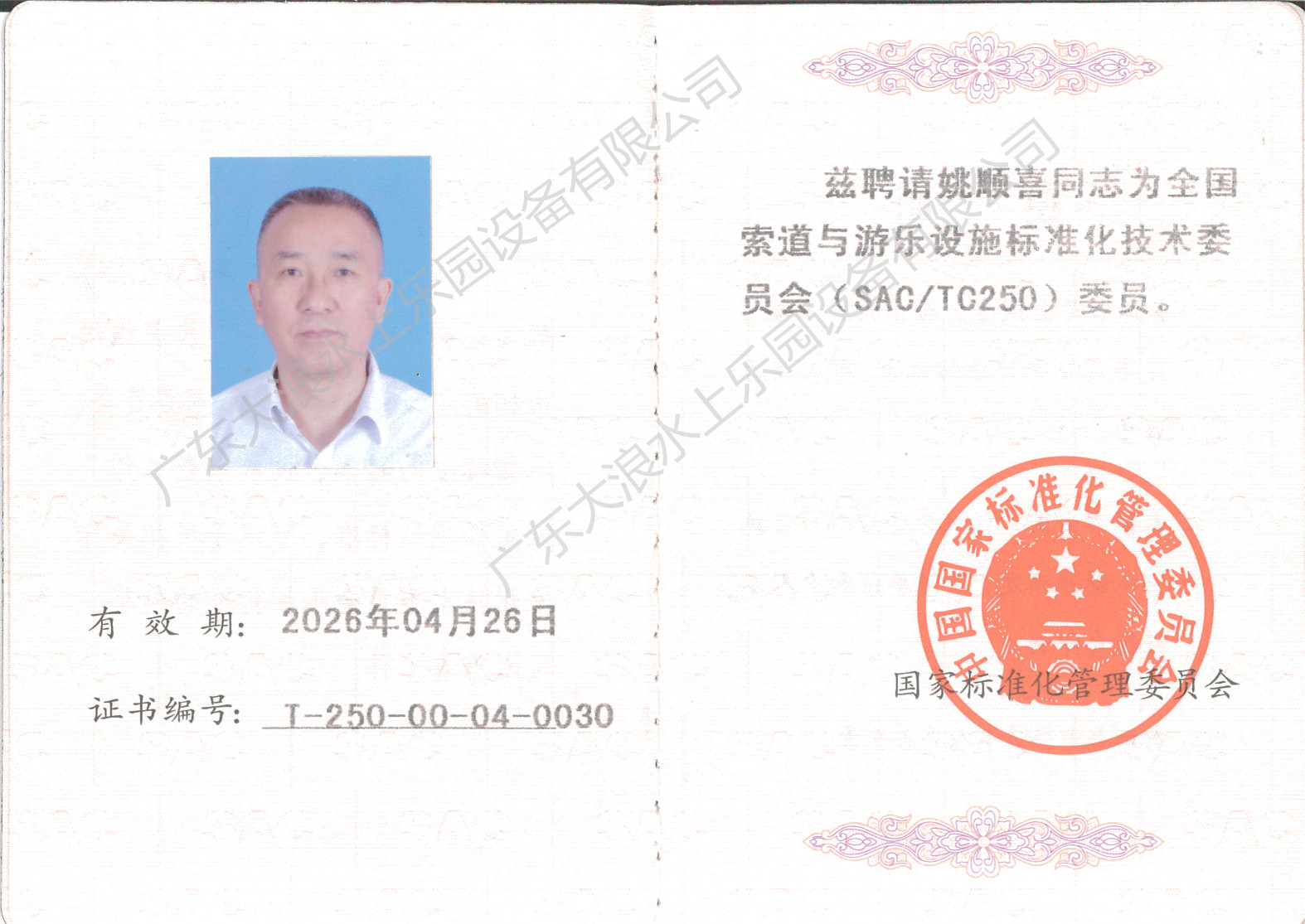 此外廣東大浪自2016年加入了《全國索道與游樂(lè )設施標準化技術(shù)委員會(huì )(SAC/TC250)》,常務(wù)副總經(jīng)理姚順喜先生也是《全國索道與游樂(lè )設施標準化技術(shù)委員會(huì )(SAC/TC250)》的委員。親身參與了游樂(lè )設施相關(guān)標準的討論及制定,所以在設備的運行和使用方面有更多研究。